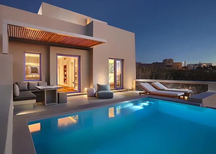 The 4-star Smy Santorini Suites & Villas Pyrgos Kallistis hotel is located merely 5 minutes' walk from Pyrgos and features a 24-hour front desk and cash machine/banking services. Boasting a swimming pool, this smoke-free hotel is nestled a 10-minute ride from natural attractions like Kamari Black Pebble Beach.
